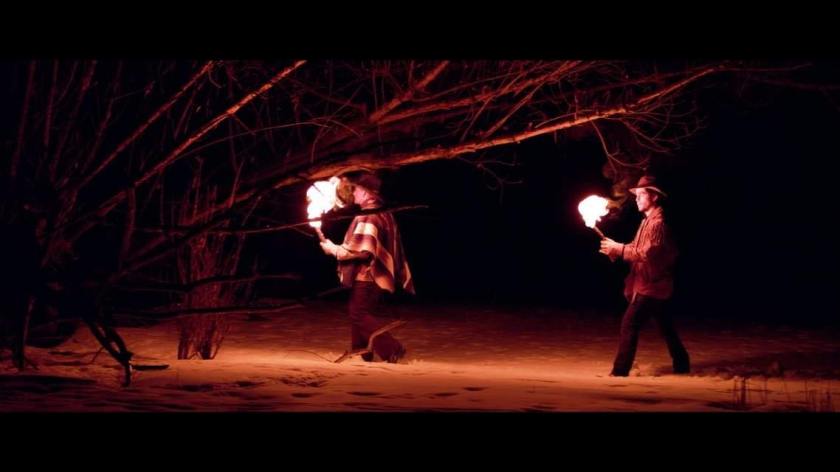From the get-go, the thing that stood out to me the most is the cinematography and usage of ambient lighting. A majority of the film is dark and cold, but the subjects are often lit up by campfire or by torches held by our protagonists. It makes for a moody viewing experience that pairs well with the music as well. If the isolated, cold, snowy weather in this film doesn’t set the tone, then the music will establish it just right for you.